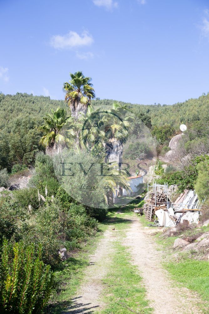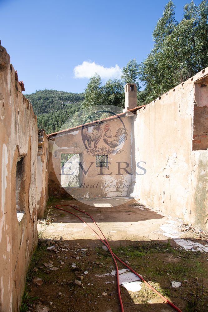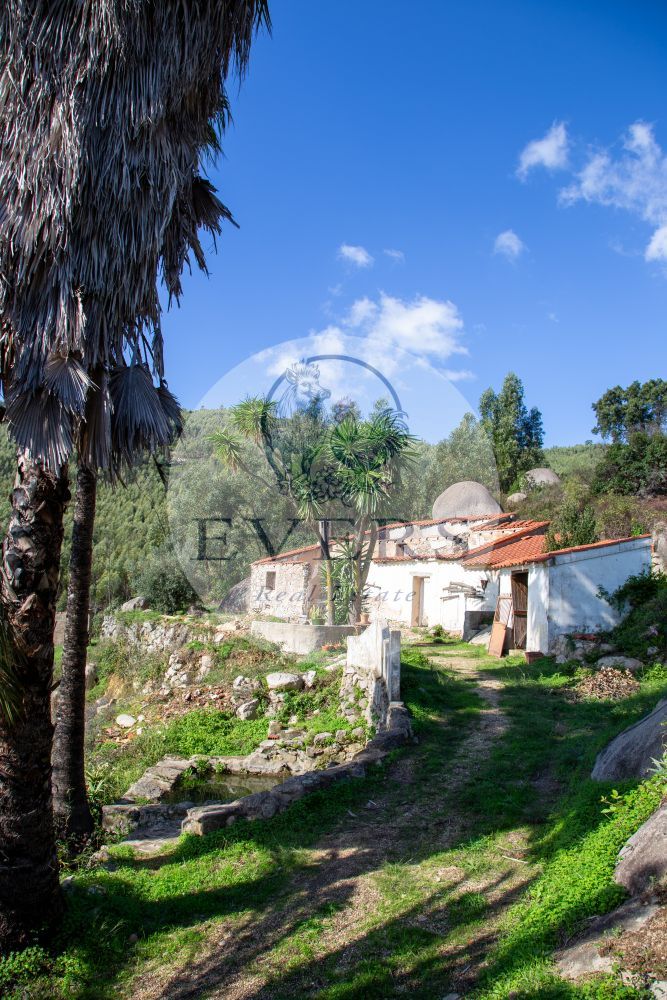 A vegetação diversificada, composta por medronheiros, sobreiros e impressionantes formações rochosas, confere à propriedade um charme especial. Além disso, existe uma nascente natural de água nas proximidades da ruína.